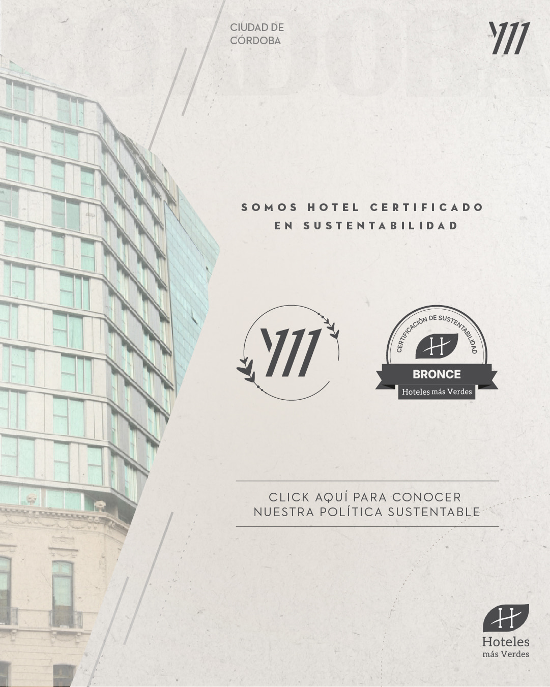 Desde 2025, nuestro hotel cuenta con la certificación “Hoteles Más Verdes” Nivel Bronce, un reconocimiento que refleja nuestro compromiso permanente con la sostenibilidad, la eficiencia energética y las buenas prácticas ambientales.